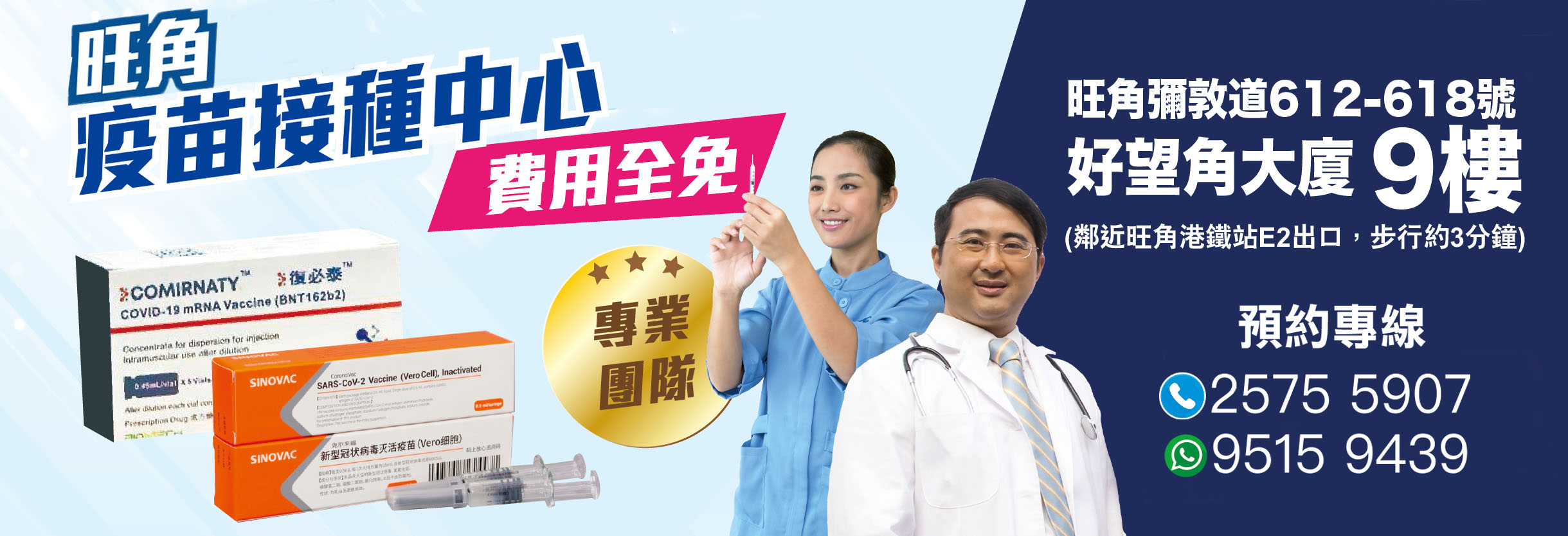 疫苗專線: 2575 5907 / WhatsApp: 9515 9439